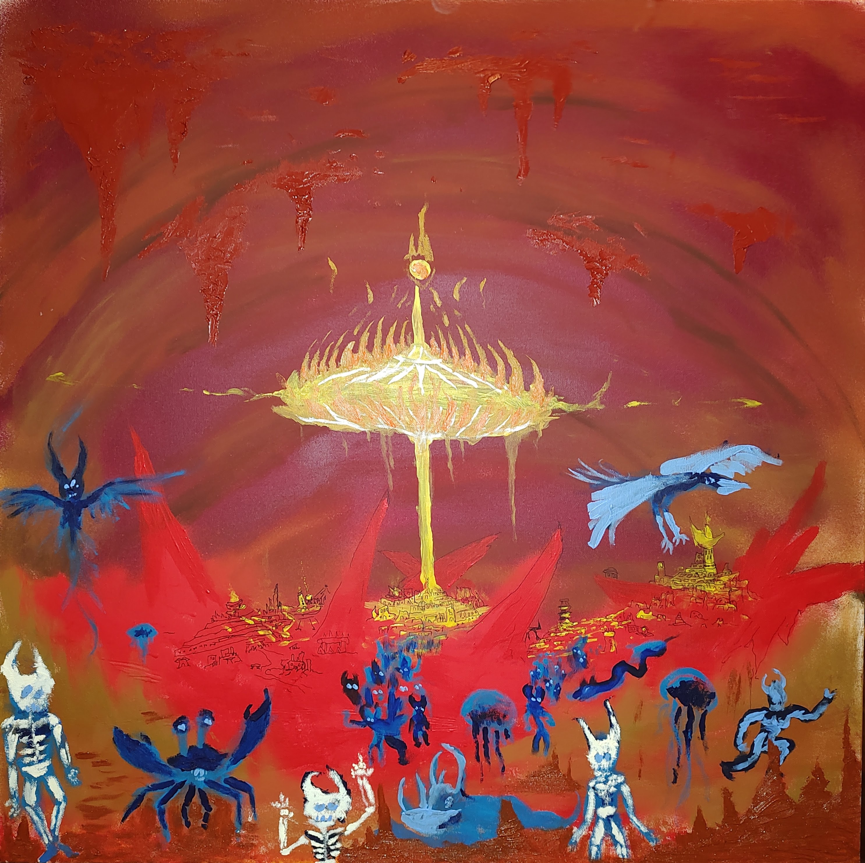 I spent a good 4 months in 2022 slowly painting this massive canvas. Largest surface I’ve ever worked on, I learned a good deal from this one. It’s not quite fully realized, but I think that I’m happy with where it’s at.