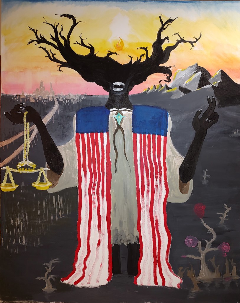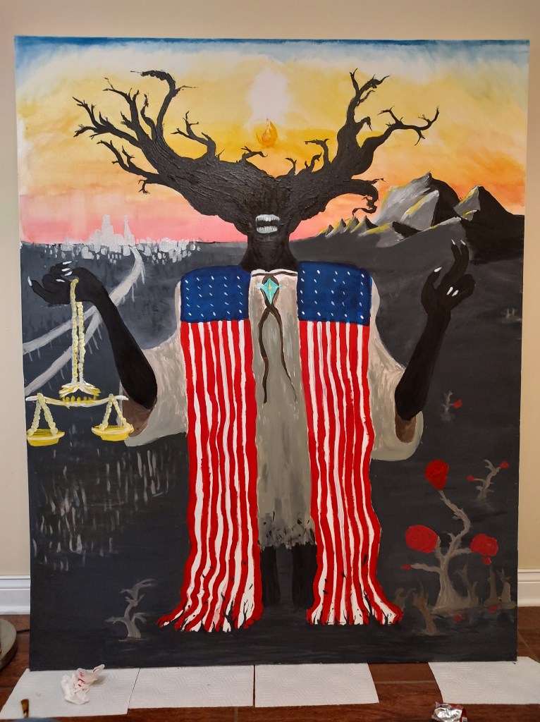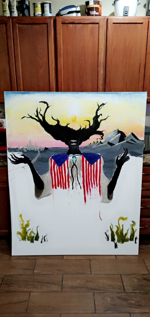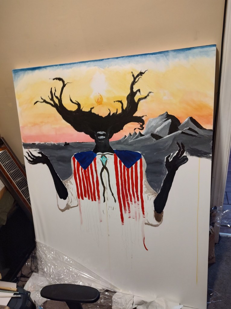 I spent a good 4 months in 2022 slowly painting this massive canvas. Largest surface I’ve ever worked on, I learned a good deal from this one. It’s not quite fully realized, but I think that I’m happy with where it’s at.
